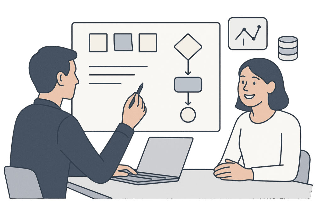 Lors de la première journée, nous réunissons vos équipes métiers et techniques pour identifier le cas d’usage à plus fort impact, puis sécuriser un échantillon de données représentatif. Cette étape garantit que le prototype porte sur une opportunité concrète et à haute valeur ajoutée.